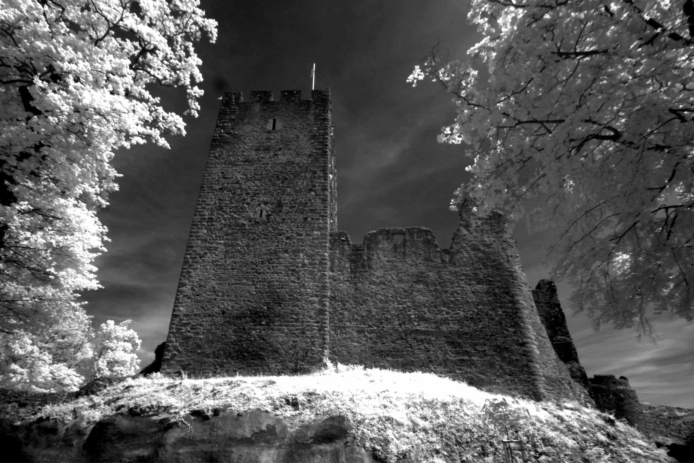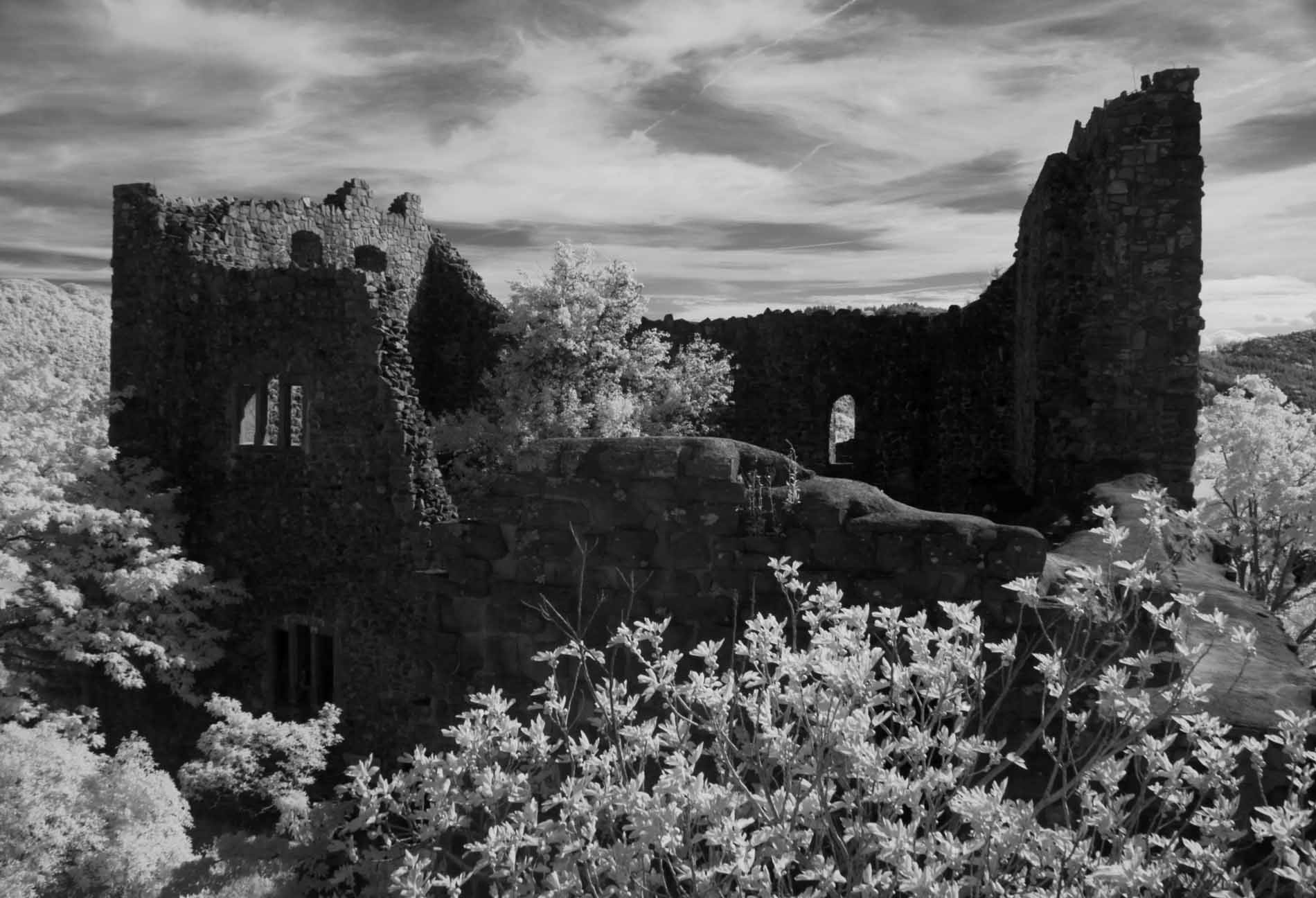 Mitte des 13. Jahrhunderts errichtet, um 1343 ausgebaut; der Verfall begann im 17. Jahrhundert; beeindruckend ist der 28 m hohe Bergfried.