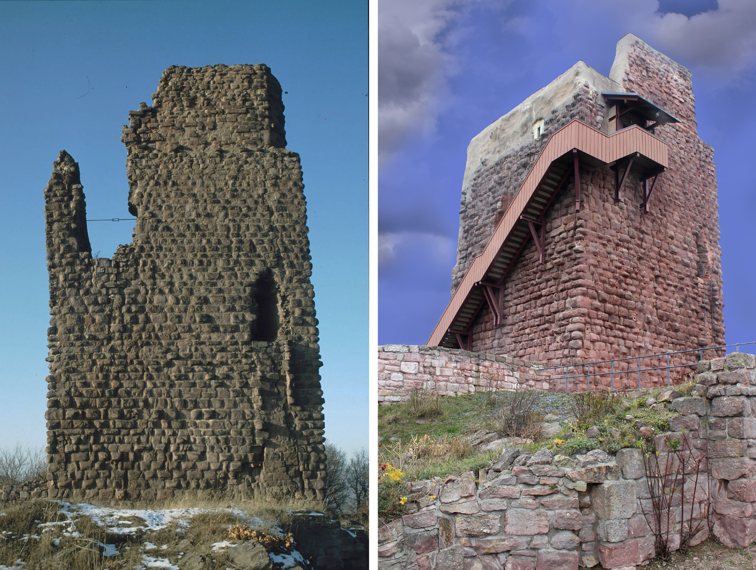 Der Bergfried in den 70er Jahren und heute