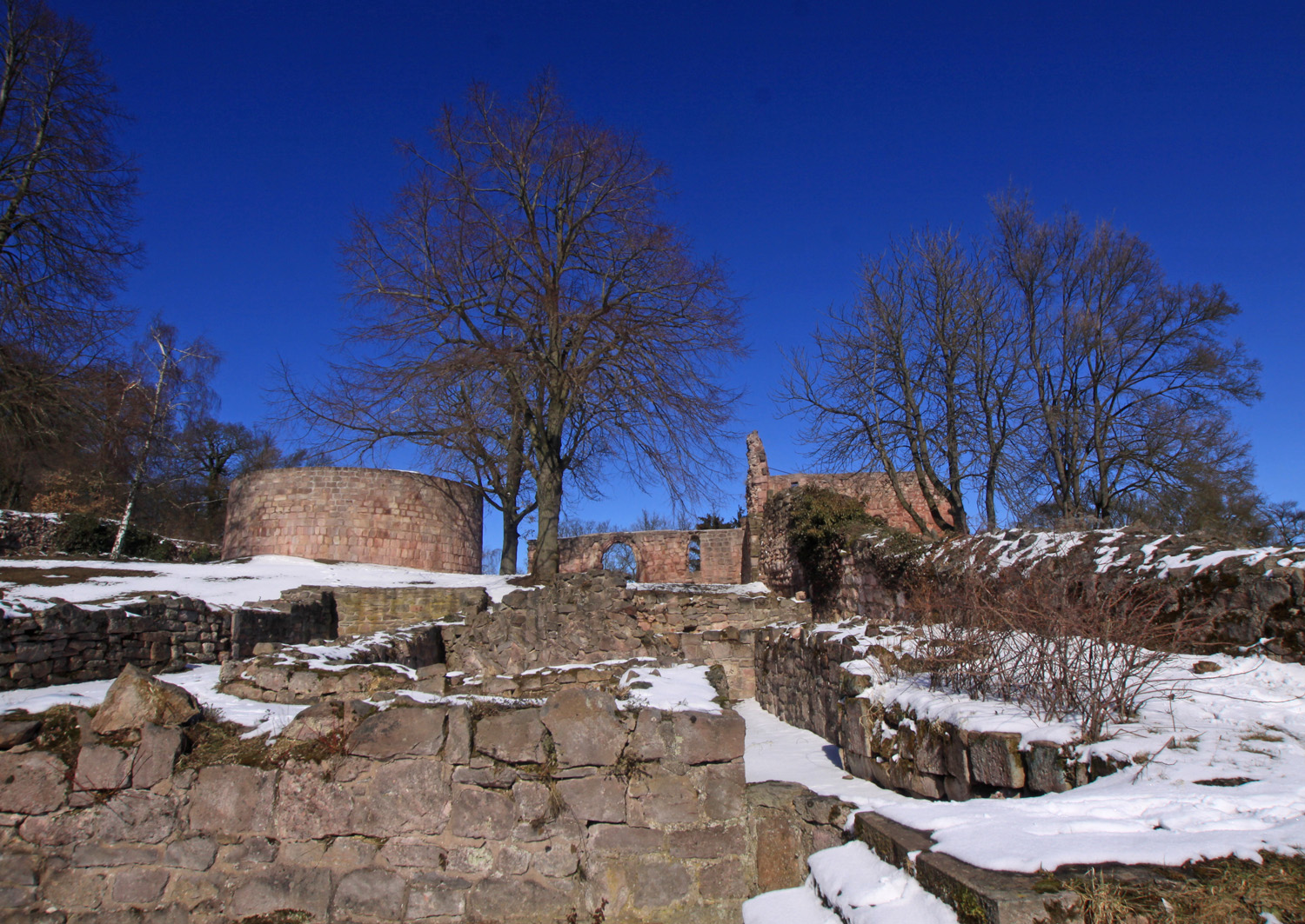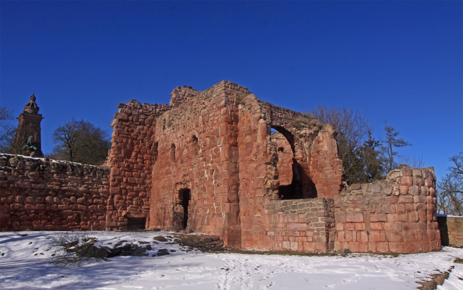 Die Reichsburg Kyffhausen zählt zu den größen deutschen Burgen. Sie spielte eine große Rolle in den Auseinandersetzungen Heinrichs IV. mit den Sachsen und Thüringern und wurde das erste mal 1115 nach der Schlacht am Welfesholz zerstört. Ihre Blüte erreichte sie in der Stauferzeit, aus der auch der Bergfried der Oberburg stammt. Sie gliedert sich in Ober,- Mittel - und Unterburg. Ein erheblicher Teil wurde durch den Bau des Kyffhäuser-Denkmals zerstört.